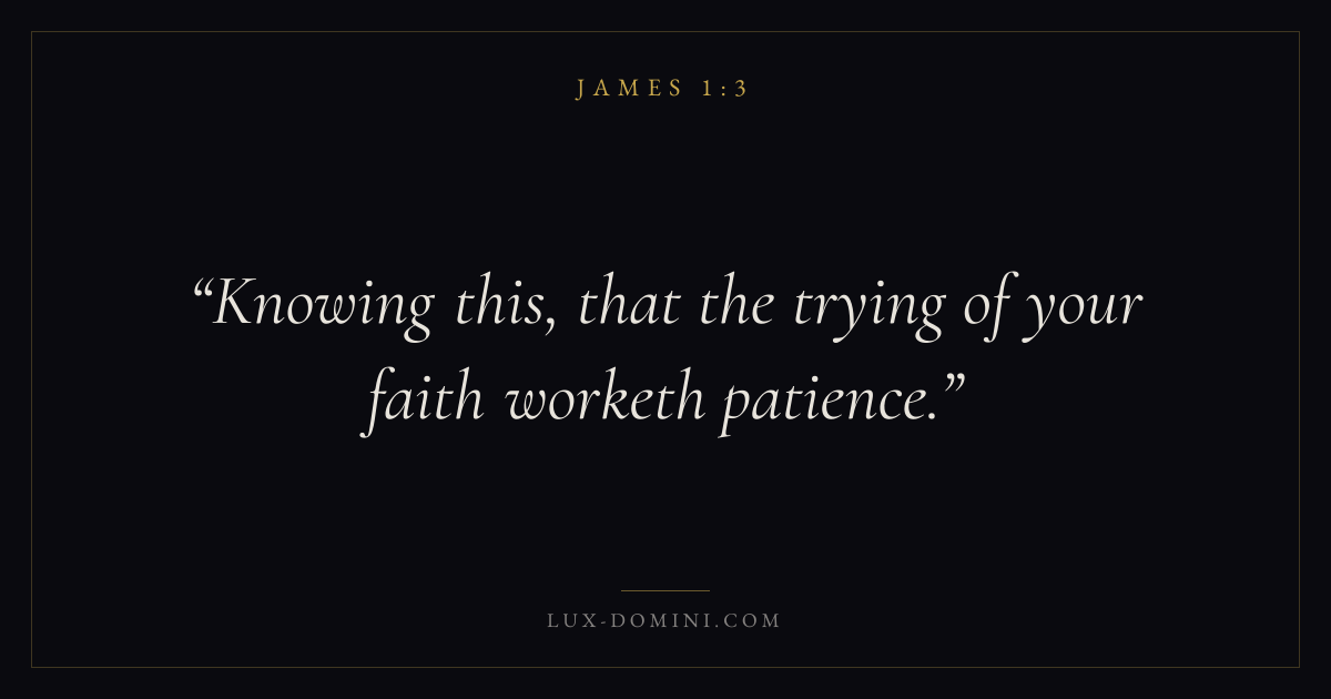 Knowing this , that the trying of your faith worketh patience. Knowing this, that the trying of your faith worketh patience - Patience is one of the fruits of such a trial, and the grace of patience is worth the trial which it may cost to procure it. This is one of the passages which show that James was acquainted with the writings of Paul. See the Introduction, Section 5. The sentiment expressed here is found in Romans 5:3 . See the notes at that verse. Paul has carried the sentiment out farther, and shows that tribulation produces other effects than patience.