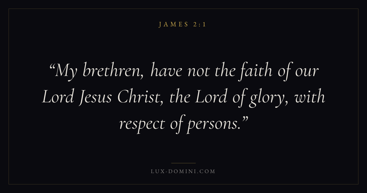 My brethren, have not the faith of our Lord Jesus Christ, the Lord of glory, with respect of persons.