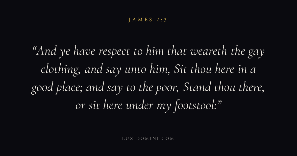 And ye have respect to him that weareth the gay clothing, and say unto him, Sit thou here in a good place; and say to the poor, Stand thou there, or sit here under my footstool: