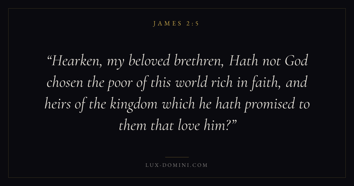 Hearken, my beloved brethren, Hath not God chosen the poor of this world rich in faith, and heirs of the kingdom which he hath promised to them that love him?