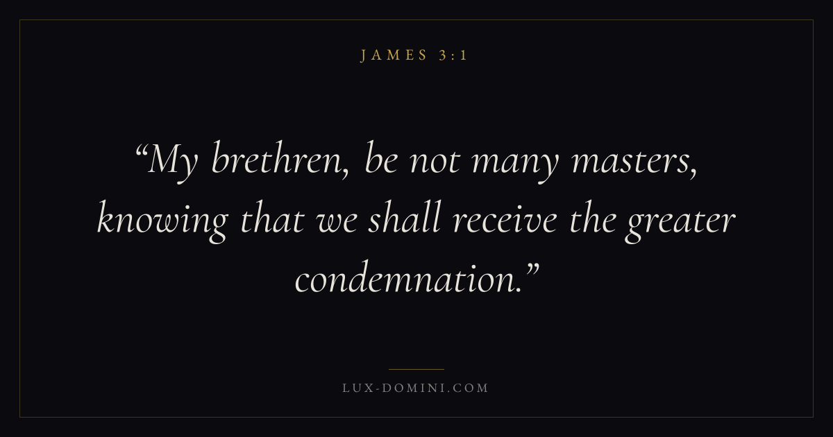 My brethren, be not many masters, knowing that we shall receive the greater condemnation.