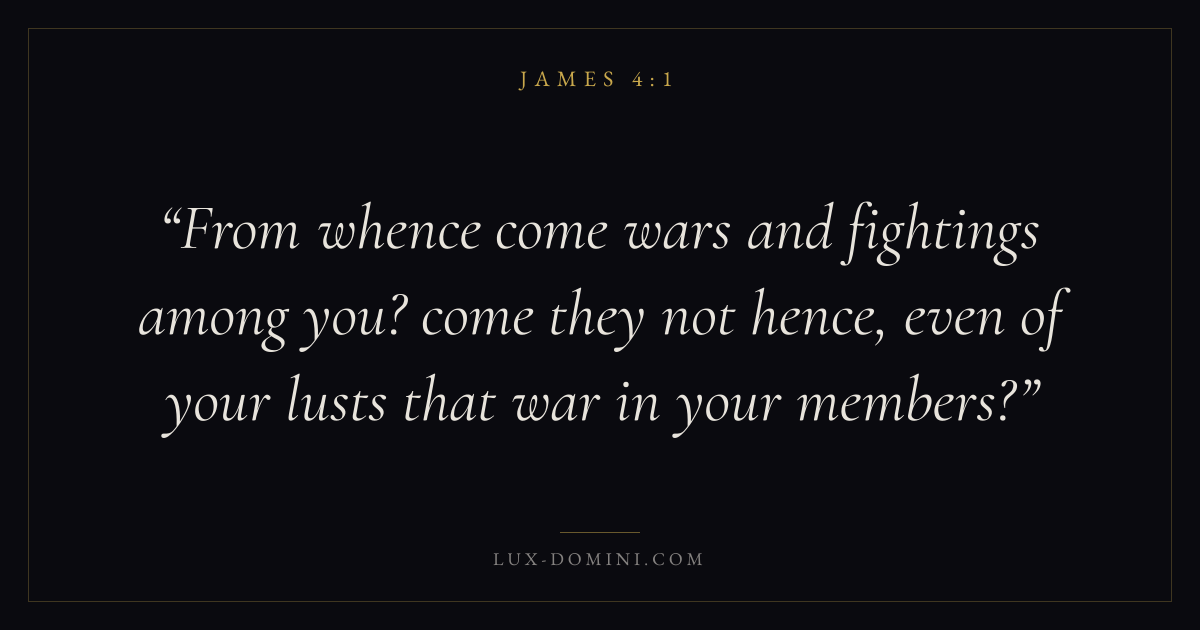 From whence come wars and fightings among you? come they not hence, even of your lusts that war in your members?