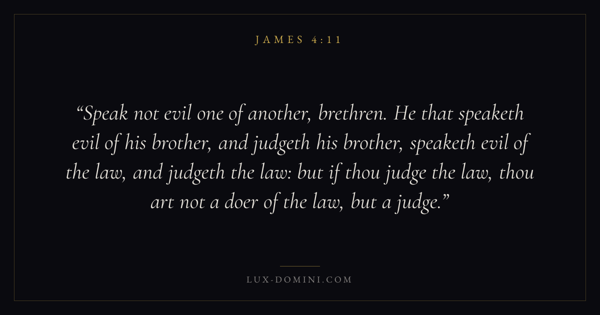 Speak not evil one of another, brethren. He that speaketh evil of his brother, and judgeth his brother, speaketh evil of the law, and judgeth the law: but if thou judge the law, thou art not a doer of the law, but a judge.