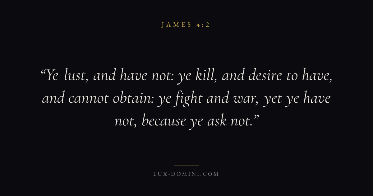 Ye lust, and have not: ye kill, and desire to have, and cannot obtain: ye fight and war, yet ye have not, because ye ask not.