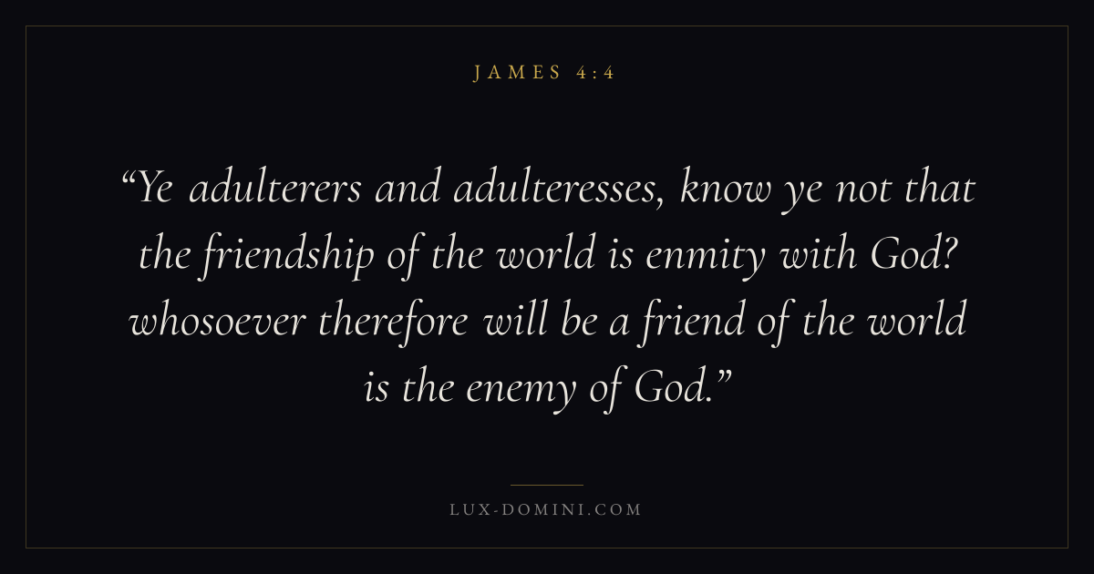 Ye adulterers and adulteresses, know ye not that the friendship of the world is enmity with God? whosoever therefore will be a friend of the world is the enemy of God.