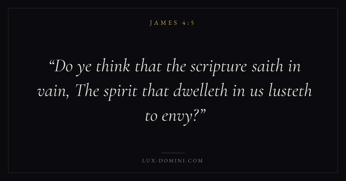Do ye think that the scripture saith in vain, The spirit that dwelleth in us lusteth to envy?