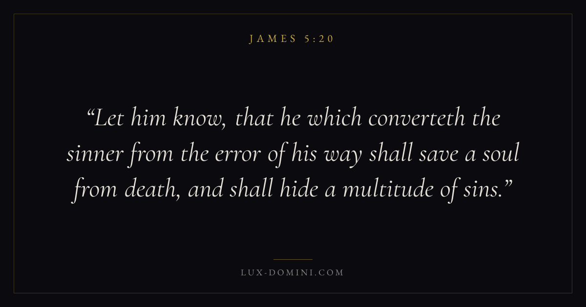 Let him know, that he which converteth the sinner from the error of his way shall save a soul from death, and shall hide a multitude of sins.