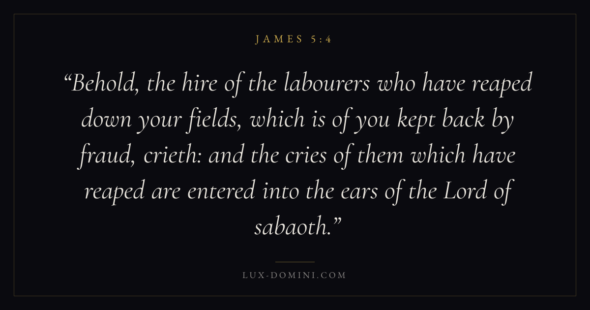 Behold, the hire of the labourers who have reaped down your fields, which is of you kept back by fraud, crieth: and the cries of them which have reaped are entered into the ears of the Lord of sabaoth.