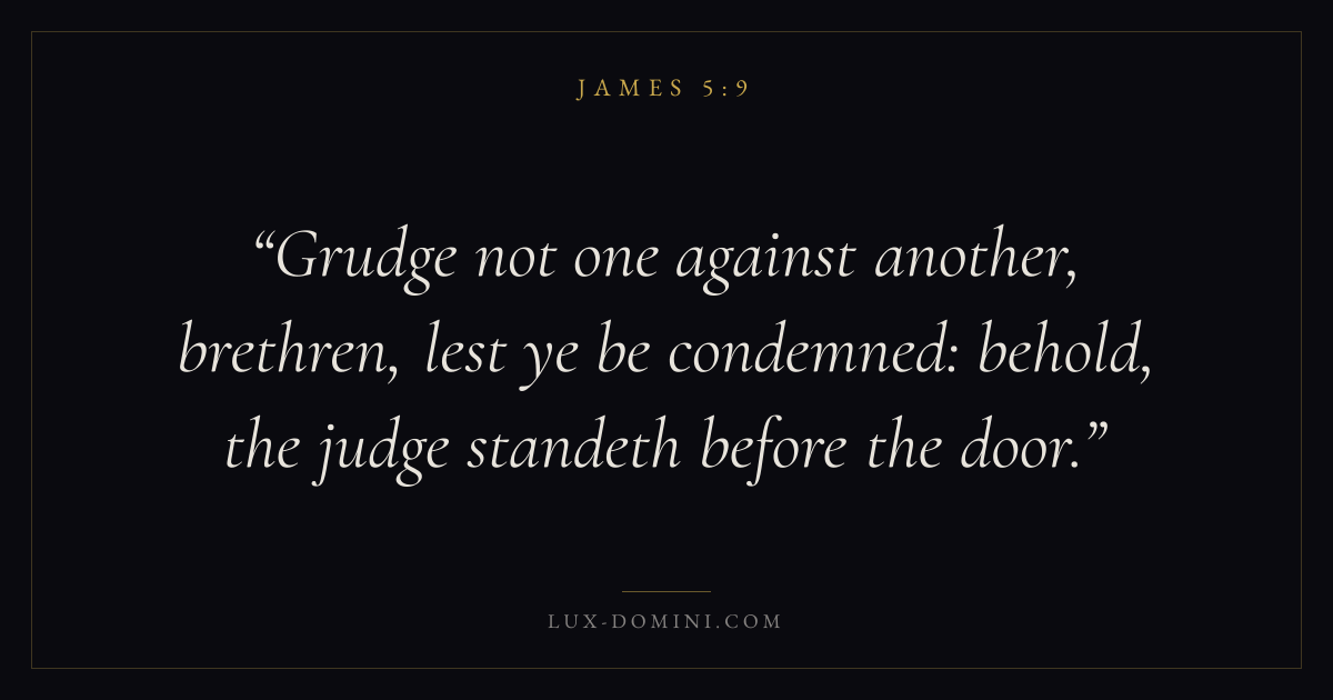 Grudge not one against another, brethren, lest ye be condemned: behold, the judge standeth before the door.