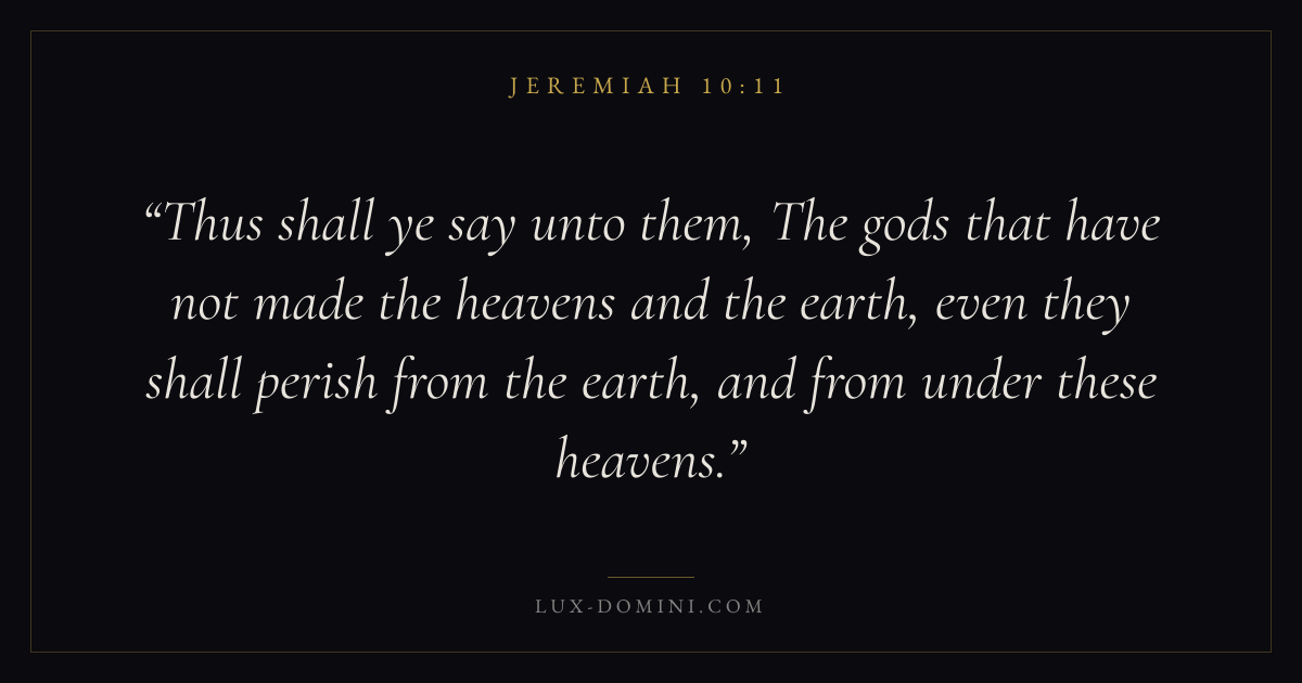 Thus shall ye say unto them, The gods that have not made the heavens and the earth, even they shall perish from the earth, and from under these heavens.