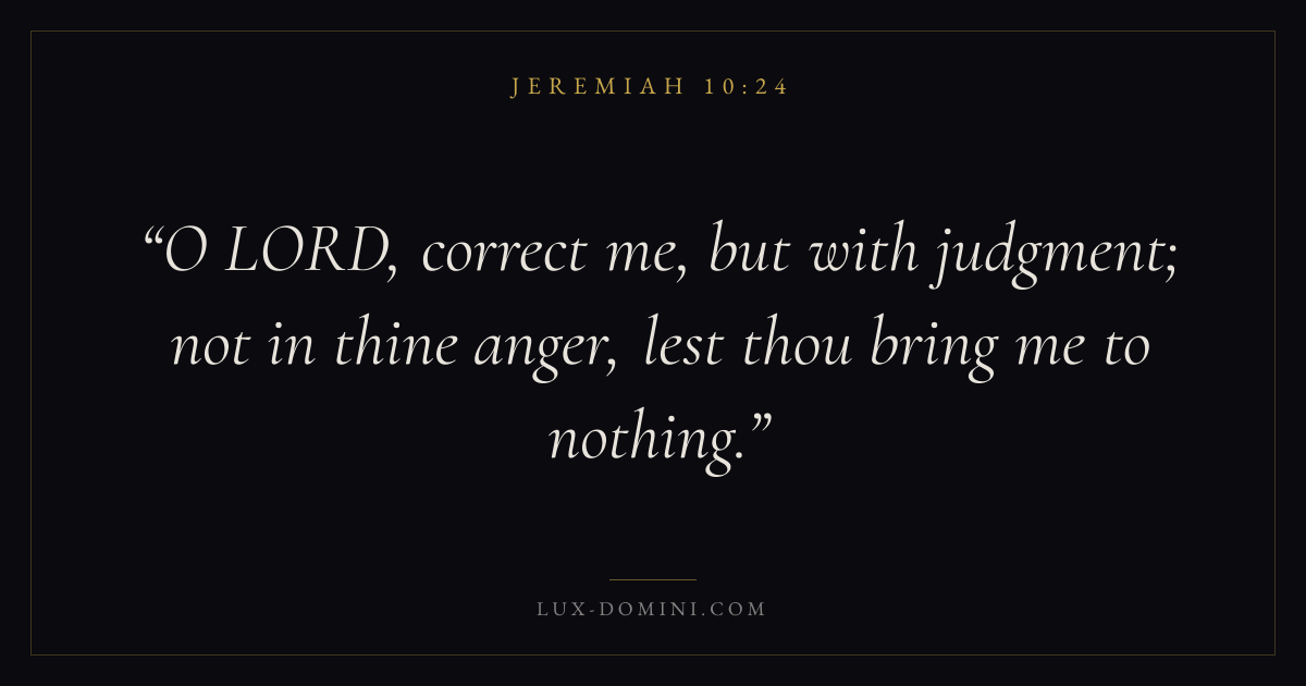 O LORD, correct me, but with judgment; not in thine anger, lest thou bring me to nothing.