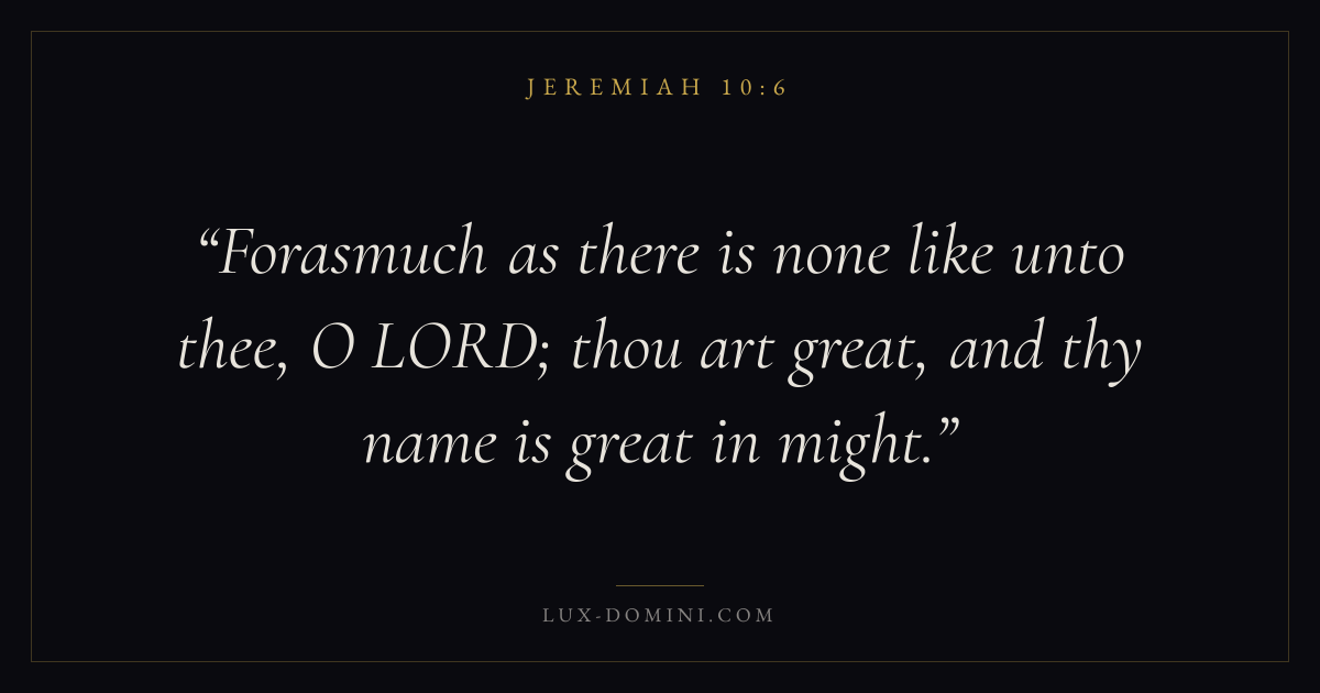 Forasmuch as there is none like unto thee, O LORD; thou art great, and thy name is great in might.