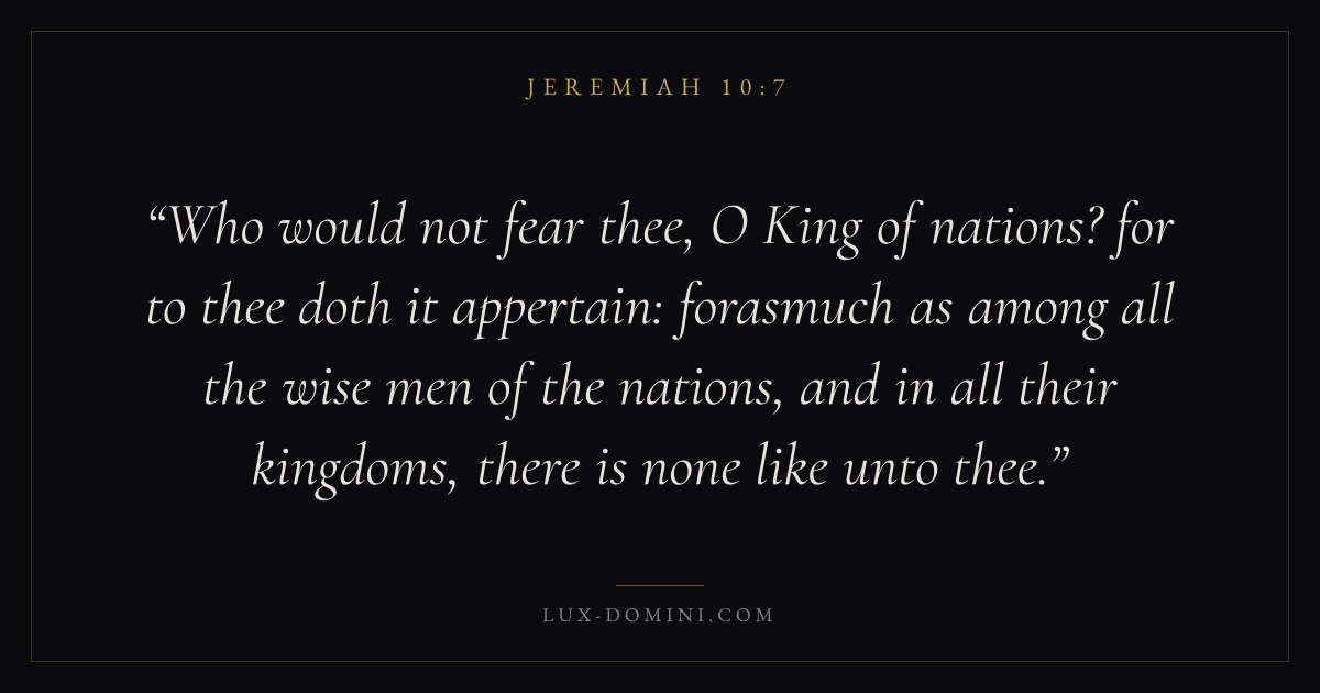 Who would not fear thee, O King of nations? for to thee doth it appertain: forasmuch as among all the wise men of the nations, and in all their kingdoms, there is none like unto thee.