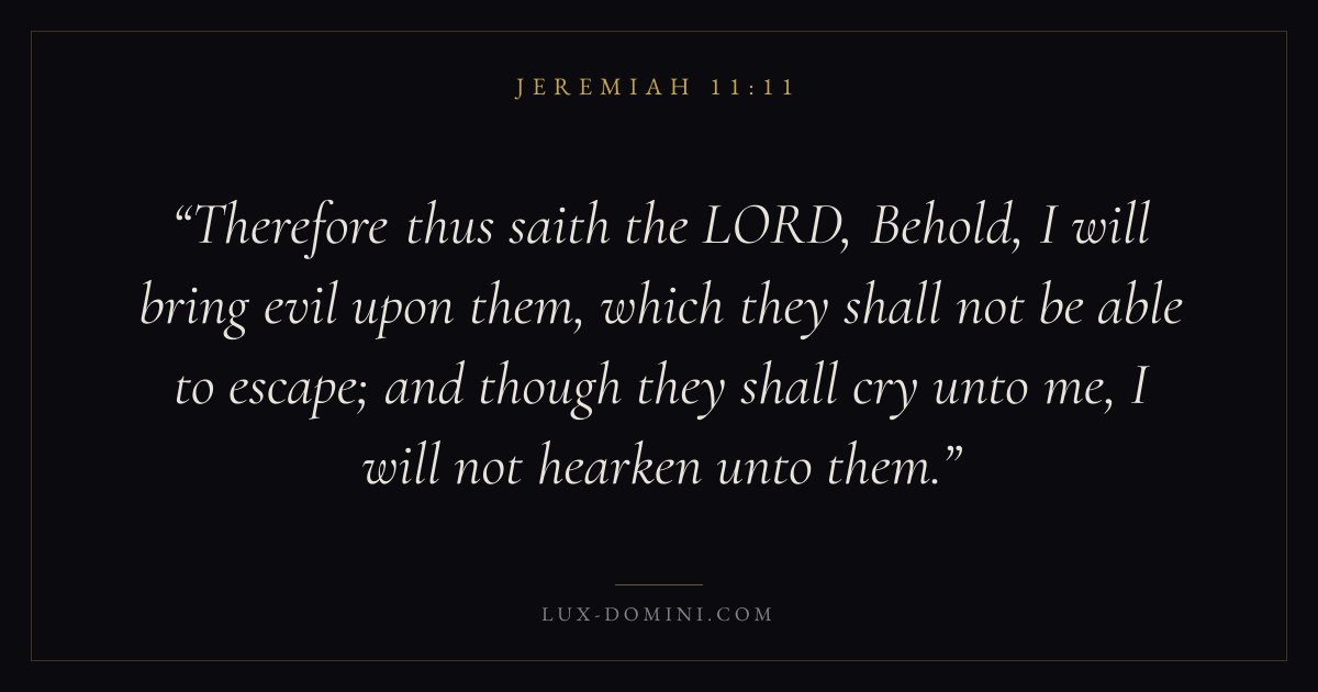Therefore thus saith the LORD, Behold, I will bring evil upon them, which they shall not be able to escape; and though they shall cry unto me, I will not hearken unto them.