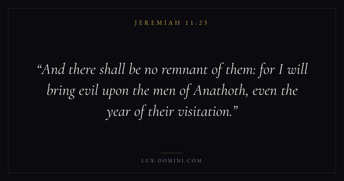 And there shall be no remnant of them: for I will bring evil upon the men of Anathoth, even the year of their visitation.