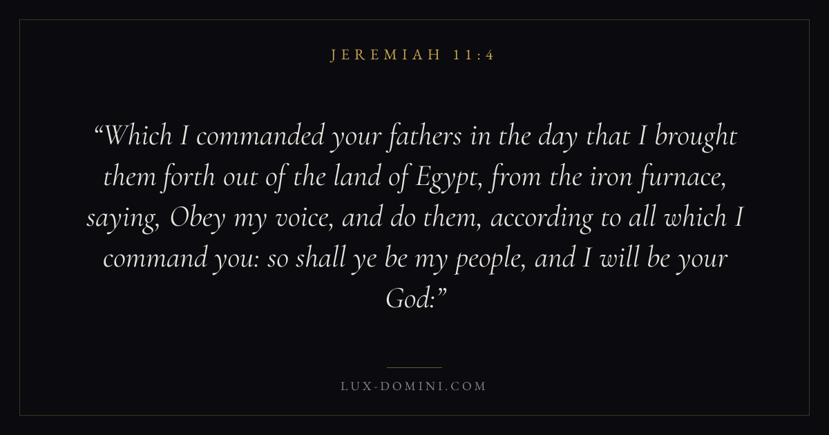 Which I commanded your fathers in the day that I brought them forth out of the land of Egypt, from the iron furnace, saying, Obey my voice, and do them, according to all which I command you: so shall ye be my people, and I will be your God:
