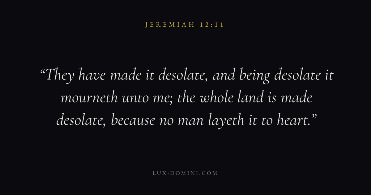 They have made it desolate, and being desolate it mourneth unto me; the whole land is made desolate, because no man layeth it to heart.
