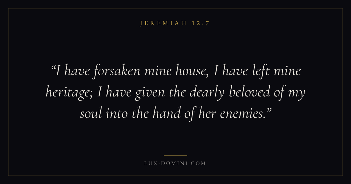 I have forsaken mine house, I have left mine heritage; I have given the dearly beloved of my soul into the hand of her enemies.