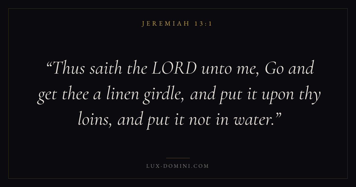 Thus saith the LORD unto me, Go and get thee a linen girdle, and put it upon thy loins, and put it not in water.