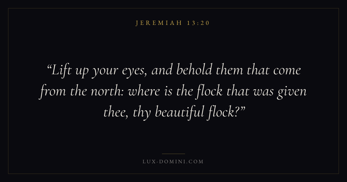 Lift up your eyes, and behold them that come from the north: where is the flock that was given thee, thy beautiful flock?