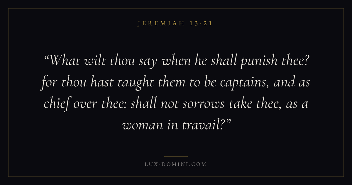 What wilt thou say when he shall punish thee? for thou hast taught them to be captains, and as chief over thee: shall not sorrows take thee, as a woman in travail?