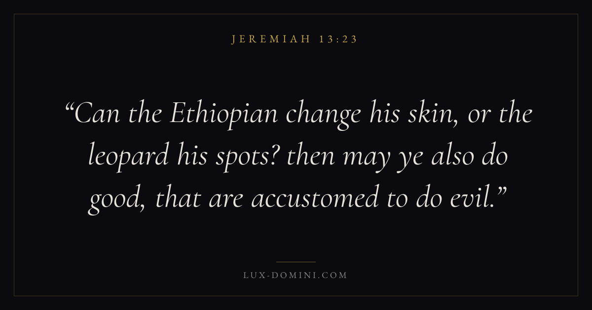 Can the Ethiopian change his skin, or the leopard his spots? then may ye also do good, that are accustomed to do evil.