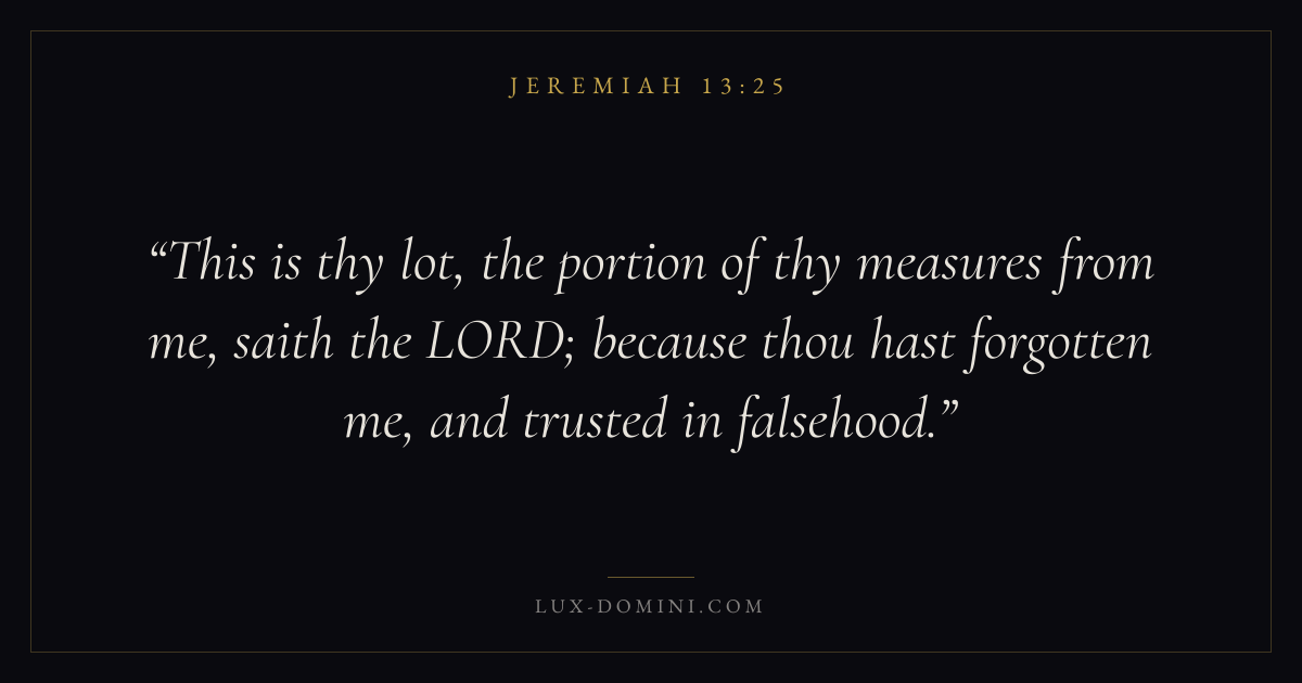 This is thy lot, the portion of thy measures from me, saith the LORD; because thou hast forgotten me, and trusted in falsehood.