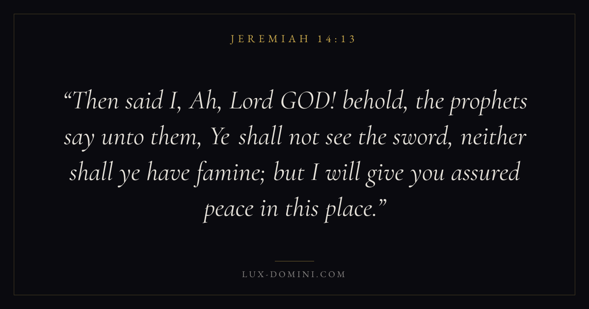 Then said I, Ah, Lord GOD! behold, the prophets say unto them, Ye shall not see the sword, neither shall ye have famine; but I will give you assured peace in this place.