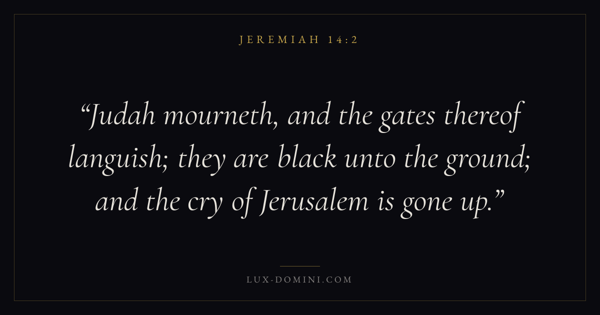 Judah mourneth, and the gates thereof languish; they are black unto the ground; and the cry of Jerusalem is gone up.