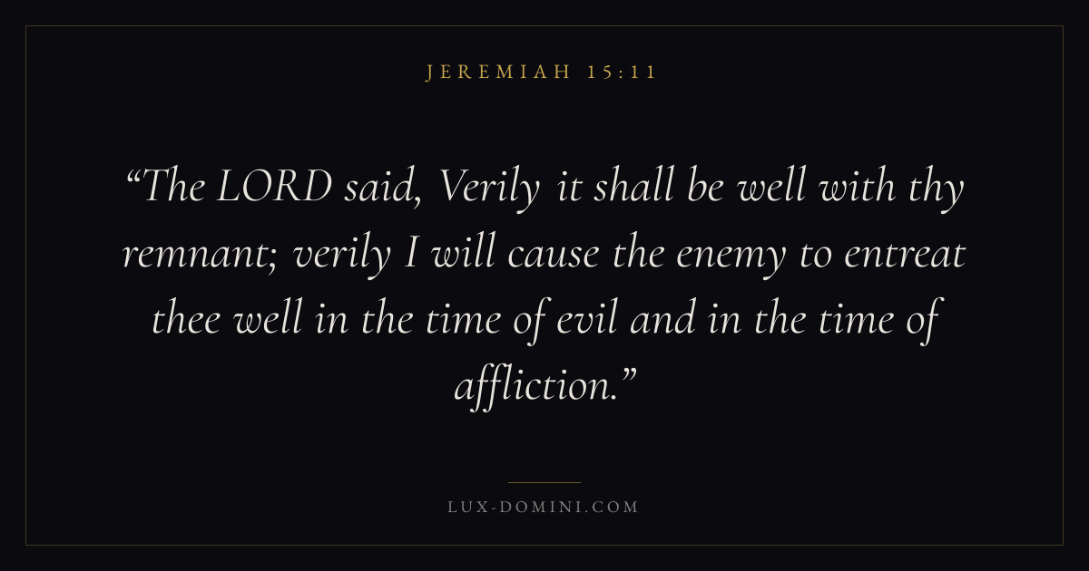 The LORD said, Verily it shall be well with thy remnant; verily I will cause the enemy to entreat thee well in the time of evil and in the time of affliction.