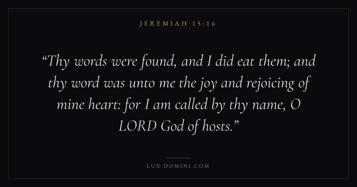 Thy words were found, and I did eat them; and thy word was unto me the joy and rejoicing of mine heart: for I am called by thy name, O LORD God of hosts.