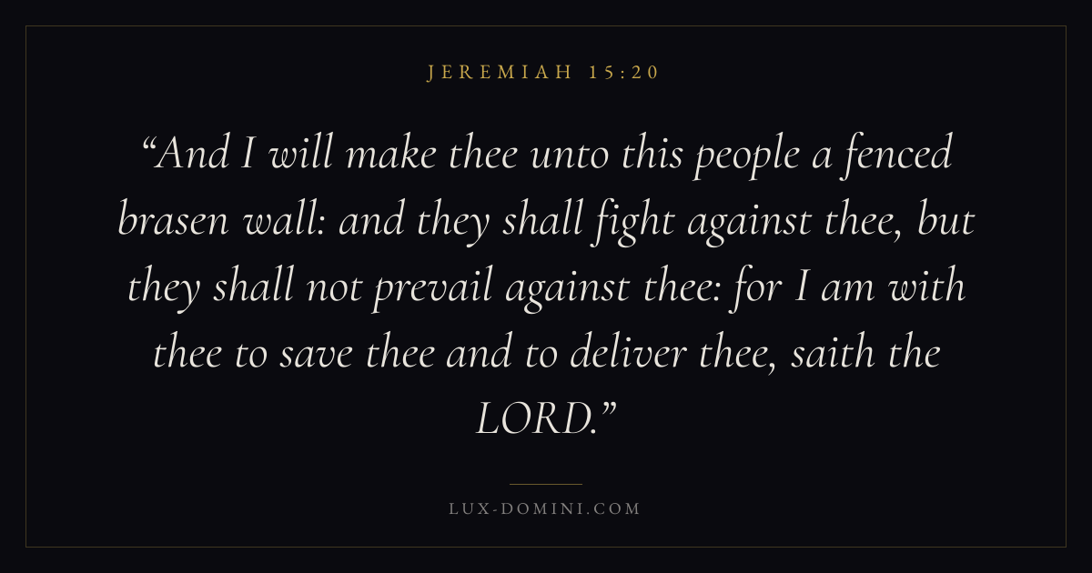 And I will make thee unto this people a fenced brasen wall: and they shall fight against thee, but they shall not prevail against thee: for I am with thee to save thee and to deliver thee, saith the LORD.