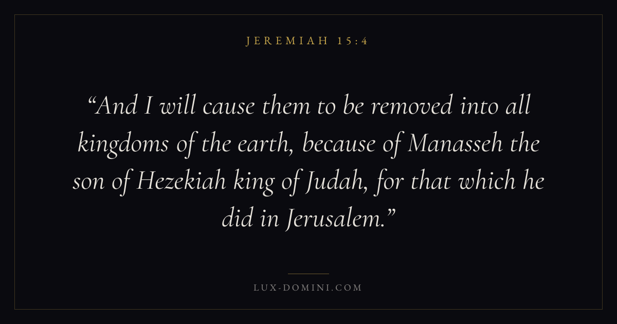 And I will cause them to be removed into all kingdoms of the earth, because of Manasseh the son of Hezekiah king of Judah, for that which he did in Jerusalem.