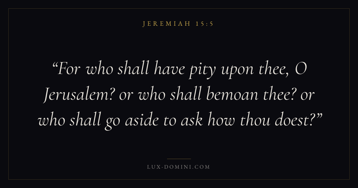 For who shall have pity upon thee, O Jerusalem? or who shall bemoan thee? or who shall go aside to ask how thou doest?