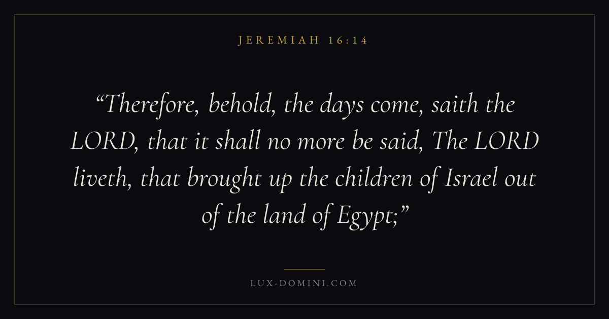 Therefore, behold, the days come, saith the LORD, that it shall no more be said, The LORD liveth, that brought up the children of Israel out of the land of Egypt;