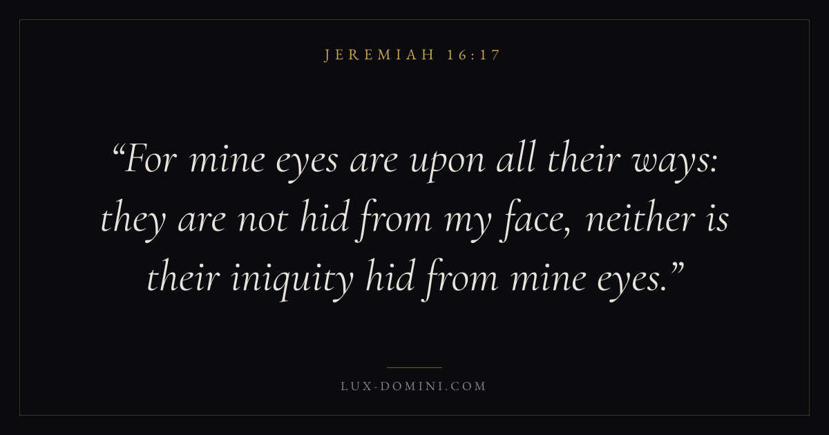 For mine eyes are upon all their ways: they are not hid from my face, neither is their iniquity hid from mine eyes.