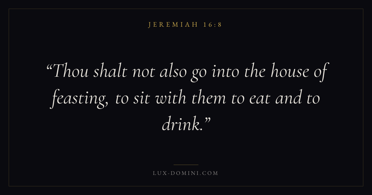 Thou shalt not also go into the house of feasting, to sit with them to eat and to drink.