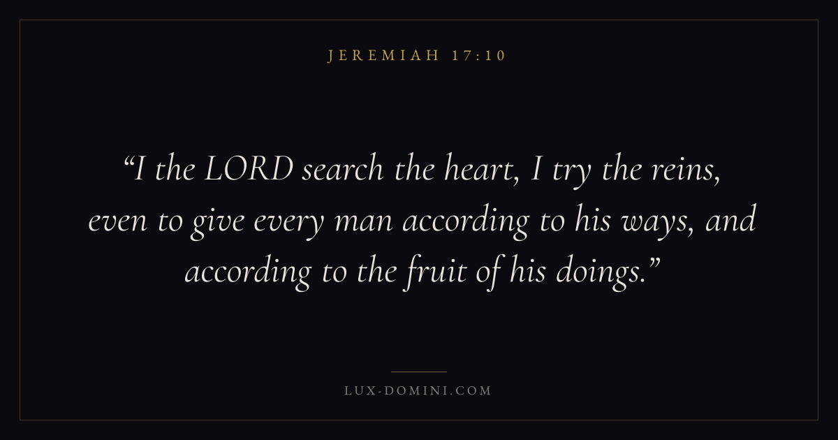 I the LORD search the heart, I try the reins, even to give every man according to his ways, and according to the fruit of his doings.