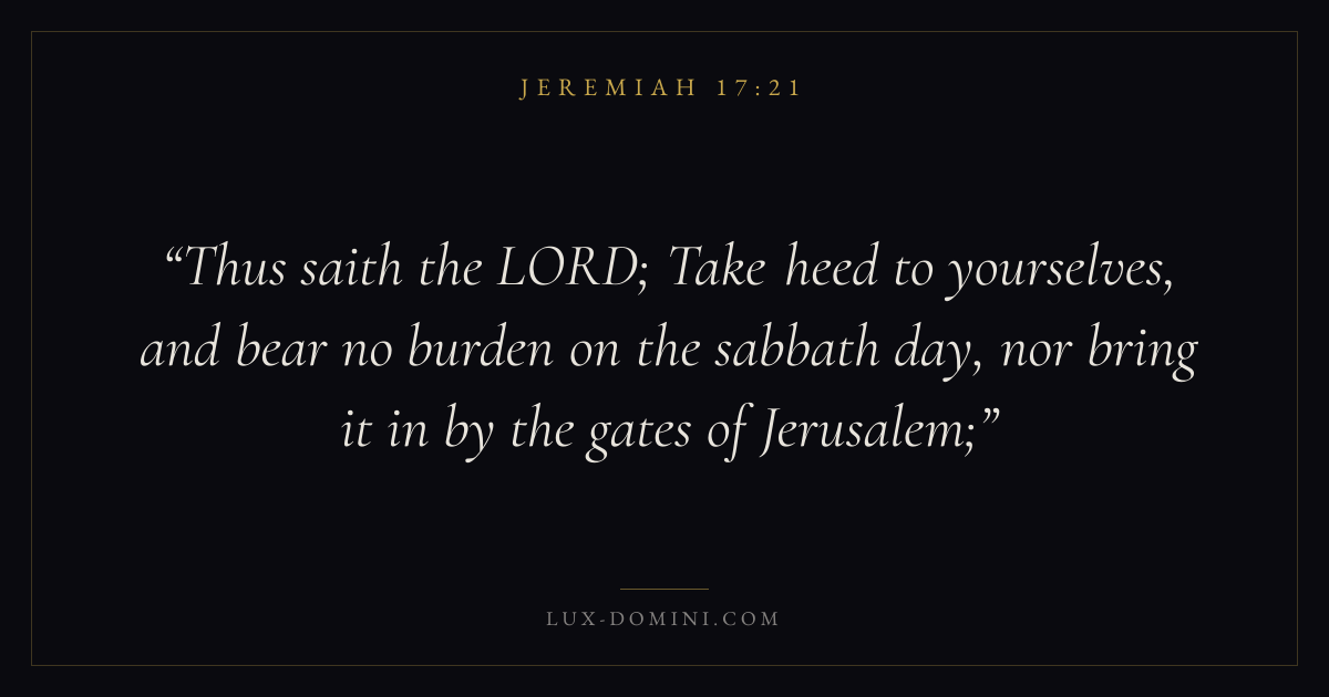 Thus saith the LORD; Take heed to yourselves, and bear no burden on the sabbath day, nor bring it in by the gates of Jerusalem;