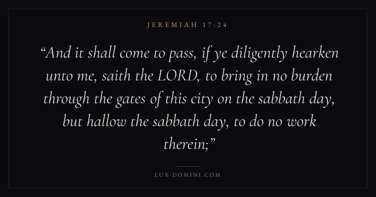 And it shall come to pass, if ye diligently hearken unto me, saith the LORD, to bring in no burden through the gates of this city on the sabbath day, but hallow the sabbath day, to do no work therein;