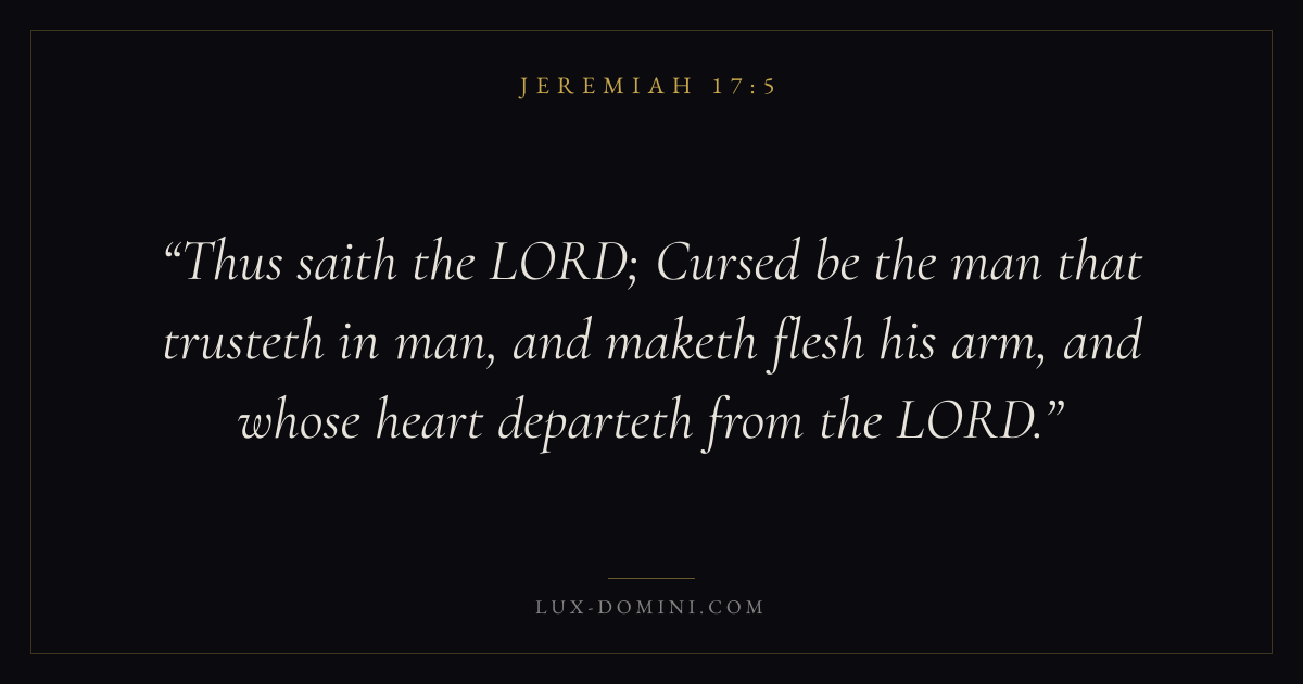 Thus saith the LORD; Cursed be the man that trusteth in man, and maketh flesh his arm, and whose heart departeth from the LORD.
