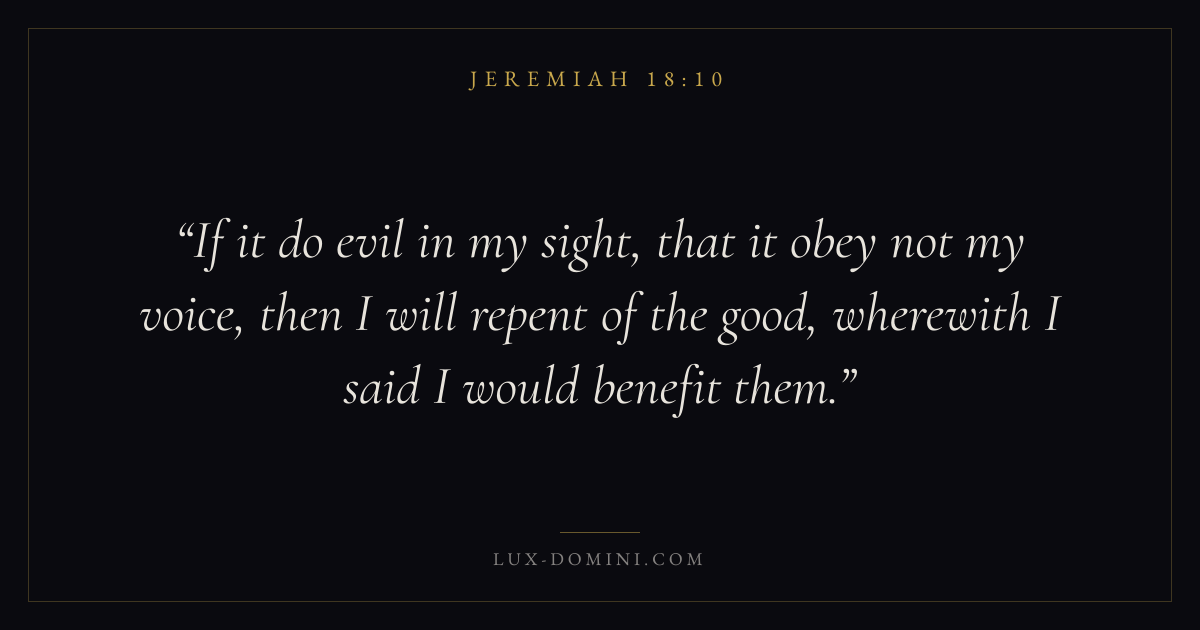 If it do evil in my sight, that it obey not my voice, then I will repent of the good, wherewith I said I would benefit them.