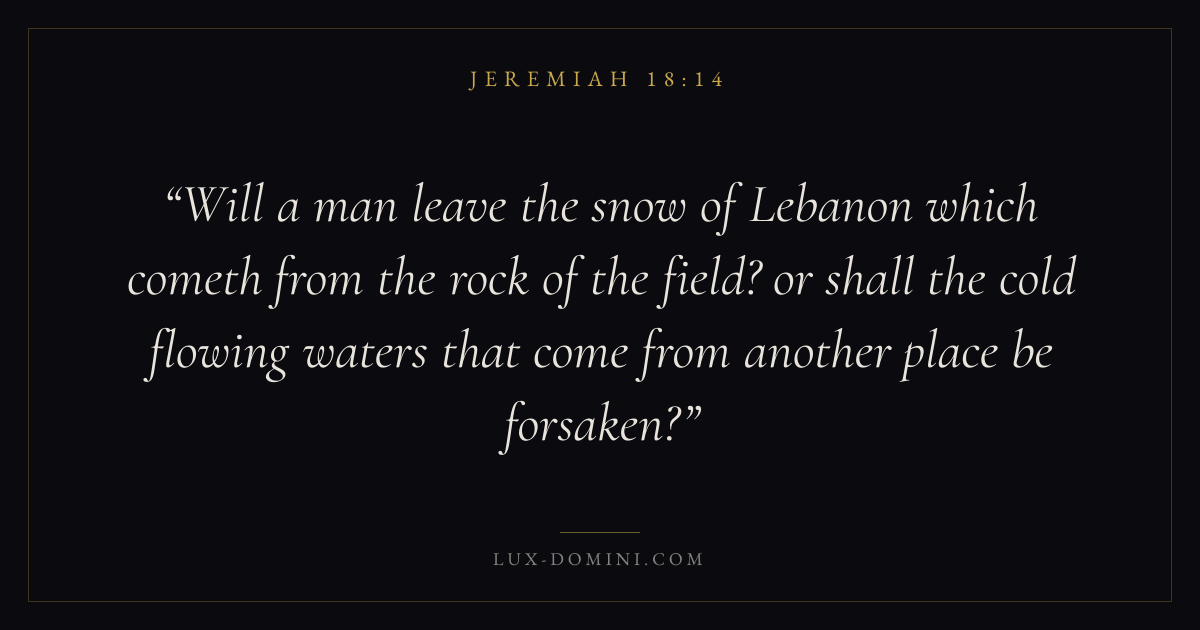 Will a man leave the snow of Lebanon which cometh from the rock of the field? or shall the cold flowing waters that come from another place be forsaken?