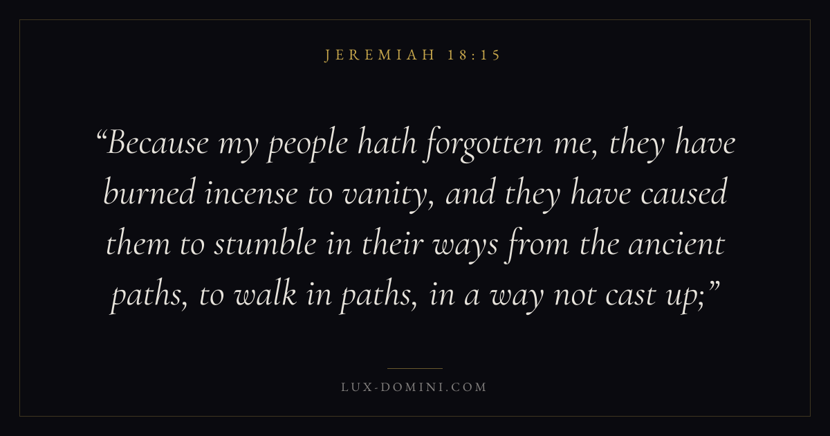 Because my people hath forgotten me, they have burned incense to vanity, and they have caused them to stumble in their ways from the ancient paths, to walk in paths, in a way not cast up;