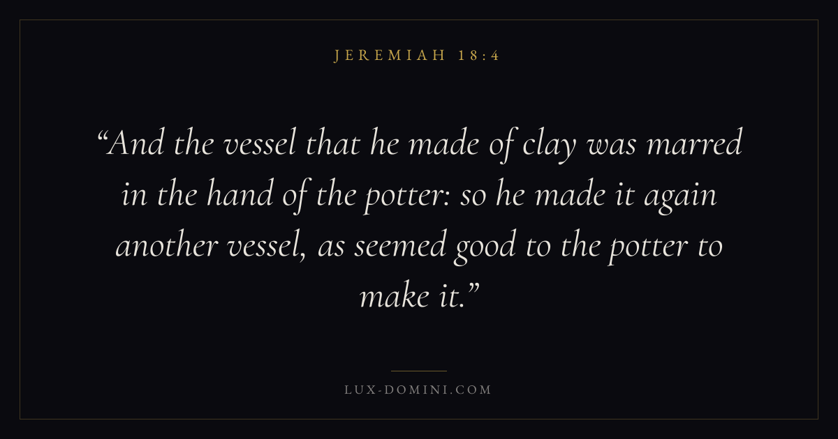 And the vessel that he made of clay was marred in the hand of the potter: so he made it again another vessel, as seemed good to the potter to make it.