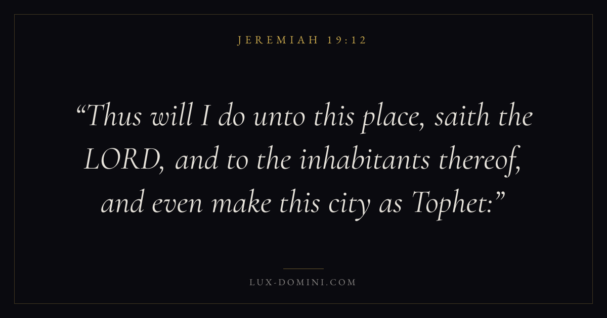 Thus will I do unto this place, saith the LORD, and to the inhabitants thereof, and even make this city as Tophet: