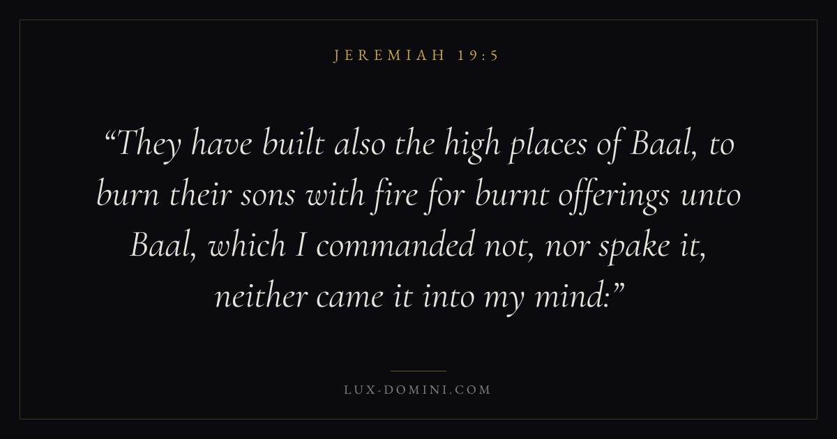 They have built also the high places of Baal, to burn their sons with fire for burnt offerings unto Baal, which I commanded not, nor spake it, neither came it into my mind: