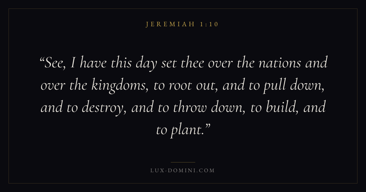 See, I have this day set thee over the nations and over the kingdoms, to root out, and to pull down, and to destroy, and to throw down, to build, and to plant.