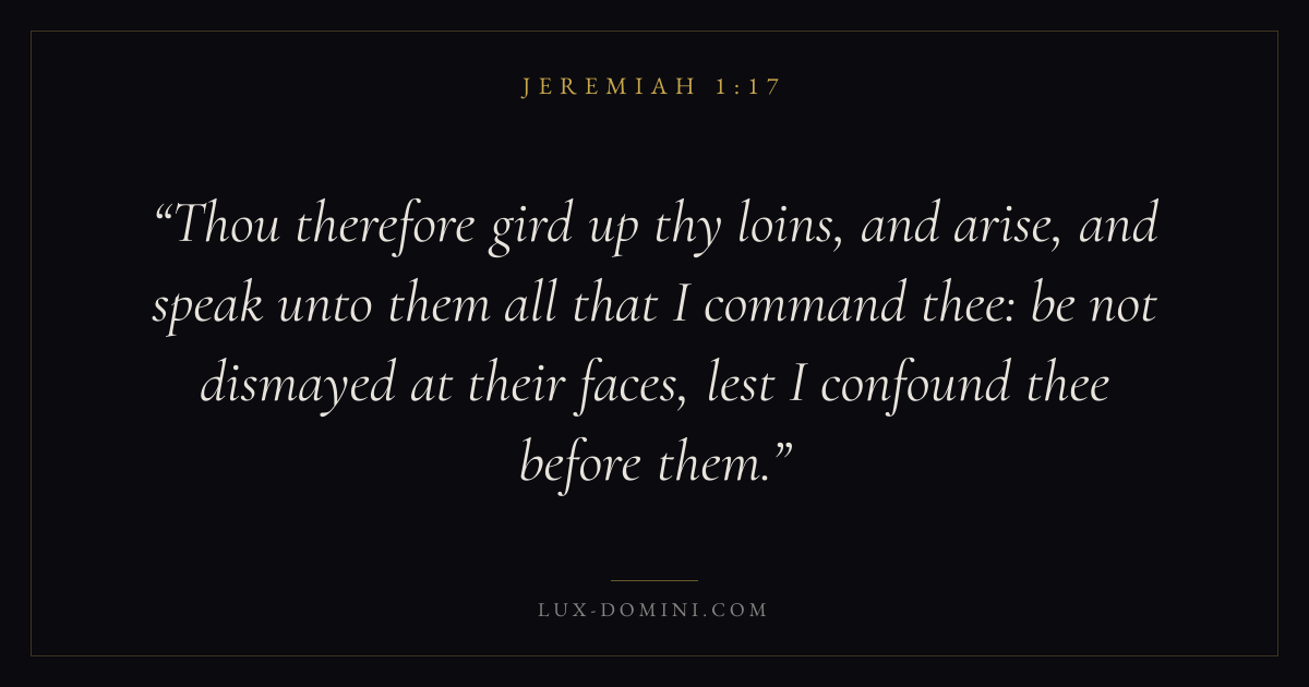 Thou therefore gird up thy loins, and arise, and speak unto them all that I command thee: be not dismayed at their faces, lest I confound thee before them.