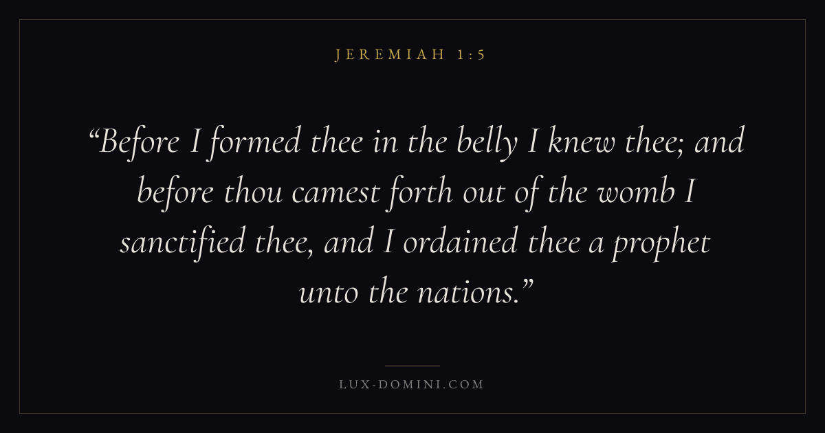 Before I formed thee in the belly I knew thee; and before thou camest forth out of the womb I sanctified thee, and I ordained thee a prophet unto the nations.